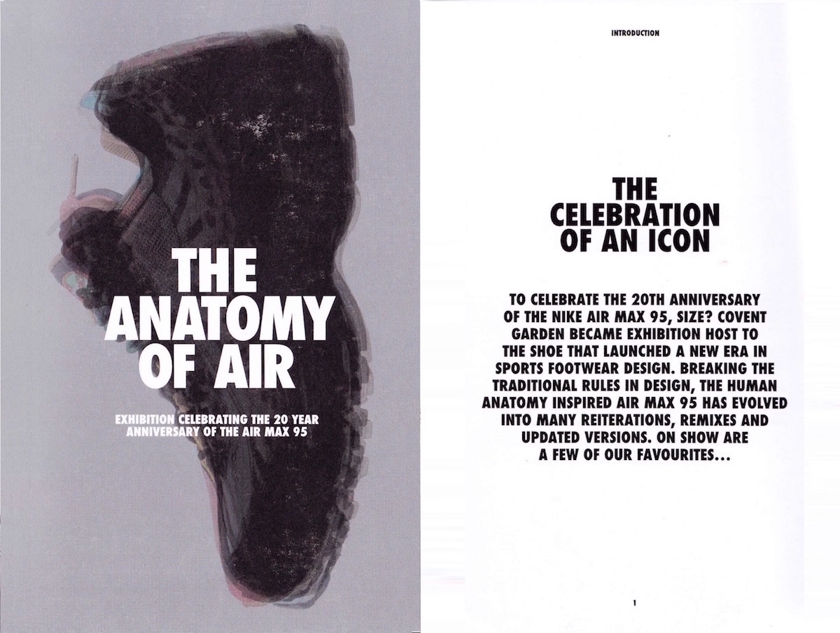 An exhibition and accompanying book celebrated the 20 year anniversary of the Nike Air Max 95, in partnership with sports footwear retailer, size?.